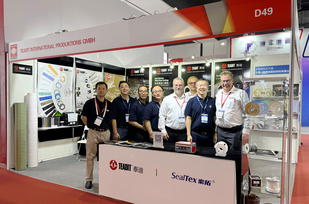 本次展會展出了帶有TEADIT® TAGTM 標(biāo)記的低逸散性可追溯盤根2848,以及API 622 測試平均泄漏率僅為2ppm、ISO 15848-1 密封級別A的2236盤根;多款膨體四氟和改性四氟材料,例如:24SH膨體四氟,TF1570\TF1580\TF1590改性四氟,以及各種符合BAM氧氣測試、PFAS Free,適用于超低溫工況、低泄漏等要求的密封產(chǎn)品。