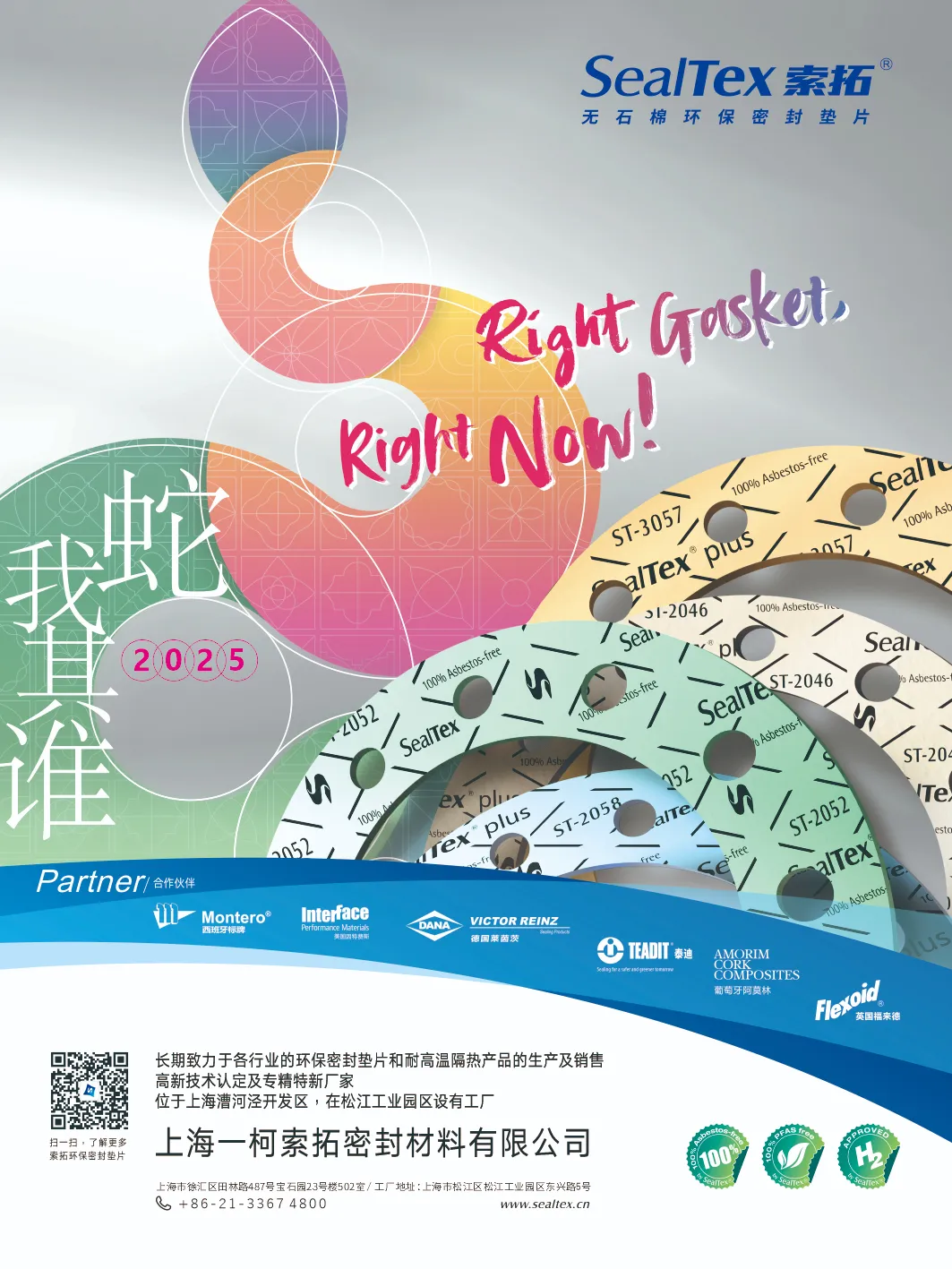 SealTex索拓代理的美國InterFace因特費斯、西班牙MONTERO標牌、葡萄牙AMORIM阿莫林、德國VICTOR REINZ萊茵茨、奧地利TEADIT泰迪等還可提供含SBR丁苯橡膠粘接劑的其他無石棉密封材料型號,可滿足客戶各類工況需求。